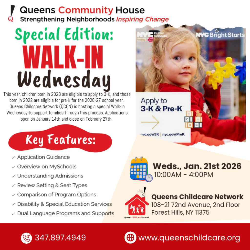 En enero, la QCCN acogió múltiples Edición especial Miércoles sin cita previa eventos para ofrecer apoyo práctico a las familias de Queens.