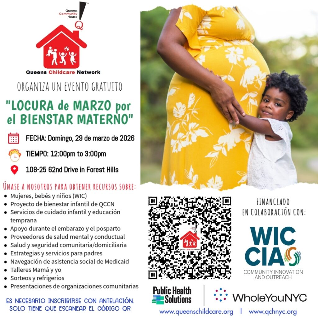 Queens Guardería (QCCN) se complace en acoger Locura de marzo maternal, un acontecimiento comunitario dinámico y centrado en la familia que apoya a las familias con niños pequeños que carecen de recursos.
